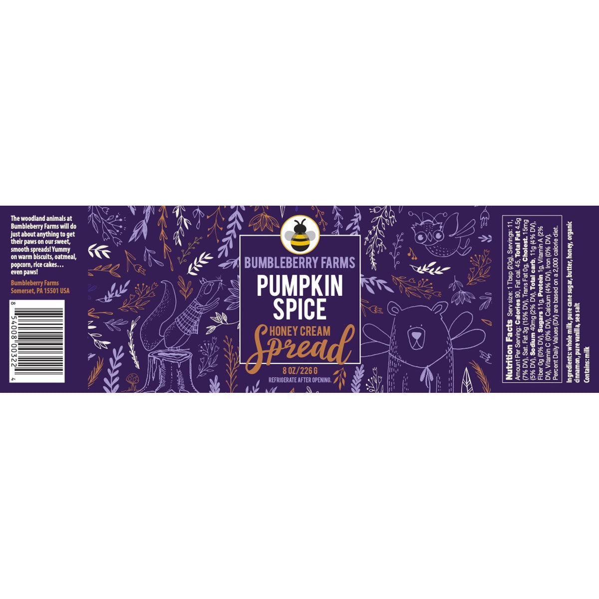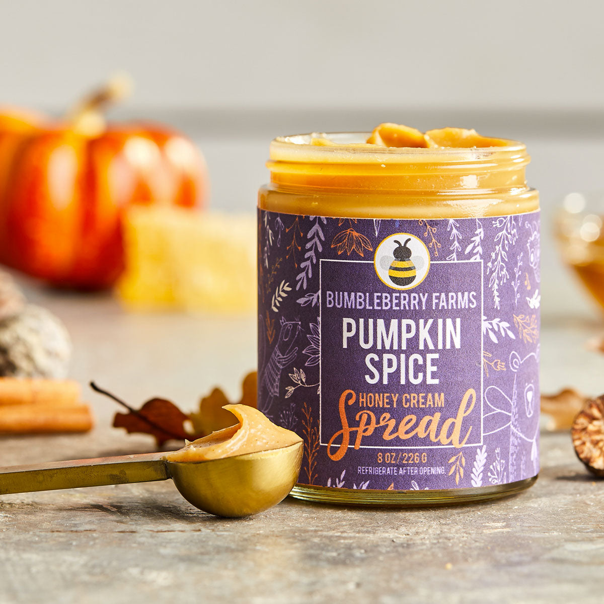 Flavor Profile Think pumpkin pie on a spoon! We're so happy that "pumpkin spice" has now taken its rightful place in Webster's Dictionary - as defined, these are the spices that can be incorporated into a pumpkin pie. We've added no pumpkin to our honey cream spread, just cinnamon, nutmeg, and ginger.