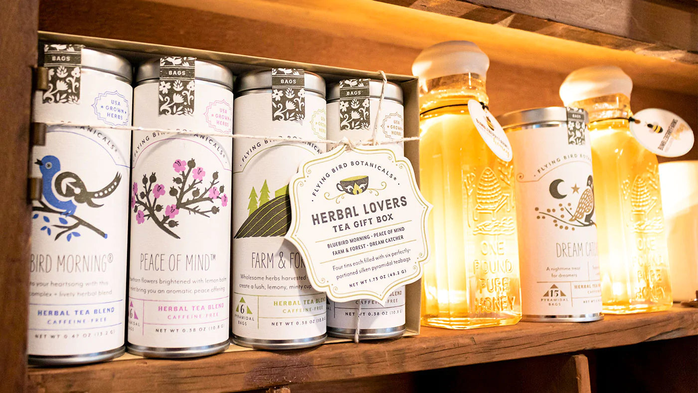 We proudly offer Flying Bird Botanical Teas and collections. We love Flying Bird Botanical because we share a love for plants, herbs, nature and the ritual of tea and honey.